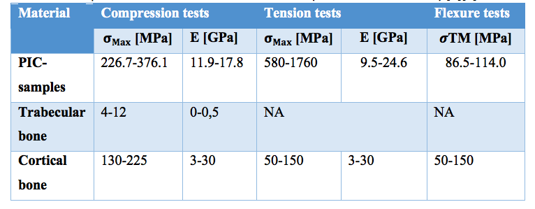 Ideally a bone substitute has original three-dimensional anatomical shape the trabecular zone is dense and has Young’s modulus in the range of 0.01-0.5 GPa and compressive strength values of 4-12 MPa while the cortical region is porous with compressive strength values in the range 130-225 MPa and modulus Young from 3-30GPa.